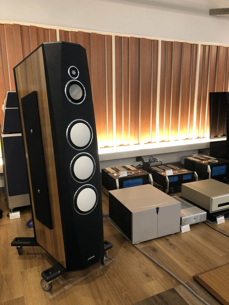 独自のトランスミッションライン低域増幅機構を採用したAcclaraスピーカを同じくイタリアのAUDIA社の重量級モノラルパワーアンプで鳴らすという滅多に体験できないコンビでの展示デモとなっています。