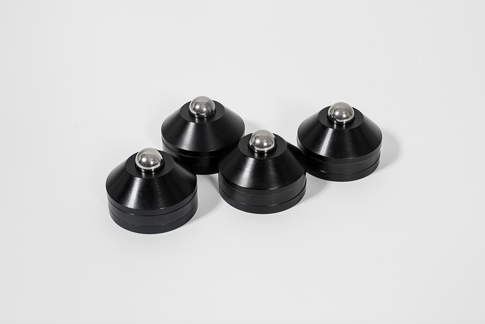 また、 AG Lifterは精密な設計により、複数の素材を層状に重ねて使用しています。これは単一の素材だけでは共振制御を効果的に実現できる特性を持つものは存在しないからであり、例えばDulcet 19および20のアイソレーションフィート技術は、共振を吸収するベアリング、減衰金属層、特殊デュアルショアニトリルラバー層(DSN)、二次減衰金属層、そして最後にニトリルラバーに張力を与えるSSグラブネジで構成される5層システムになっています。