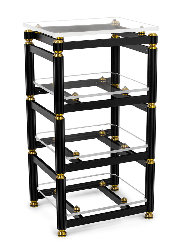 Crescendoアイソレーションラックと同様に、Apolloアイソレーションラックは真鍮製HPC(高性能コーティング)Dulcet 20(大型)アイソレーションイインシュレーターを使用した複数のアイソレーション層で構成されています。各モジュールは、垂直の押し出し成形に圧入された真鍮製キャップに収められたステンレス鋼ベアリングによって切り離されています。各アクリル製ボードは厚さ20mmの極厚硬質アクリルを使用し、真鍮製Dulcet 19(小型)アイソレーションインシュレーターを使用して振動を遮断しています。真鍮製Dulcet 19アイソレーションインシュレーターは幅と奥行きを調整可能で、微調整が可能です。Brass HPCコンポーネントは、より明瞭な音と低いノイズフロアを実現します。