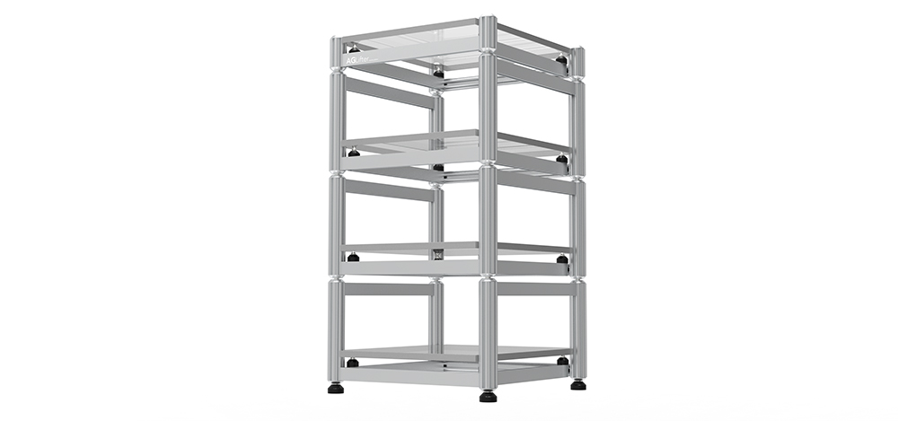 AG Lifterのラック設計はモジュール式で、最下段から機材を載せて上段まで組み立てていくため、作業が容易に行えます。