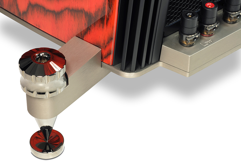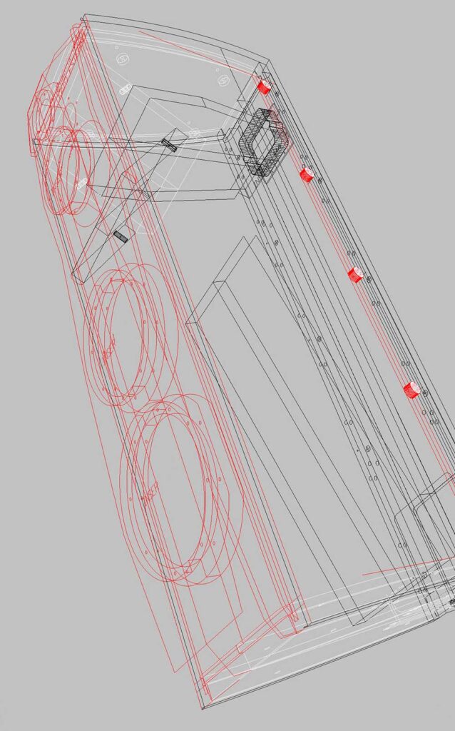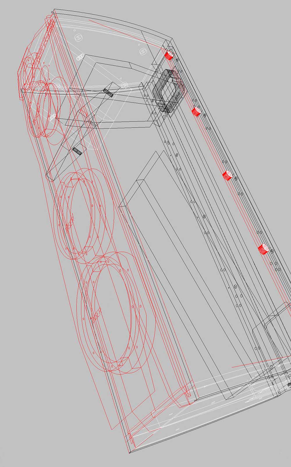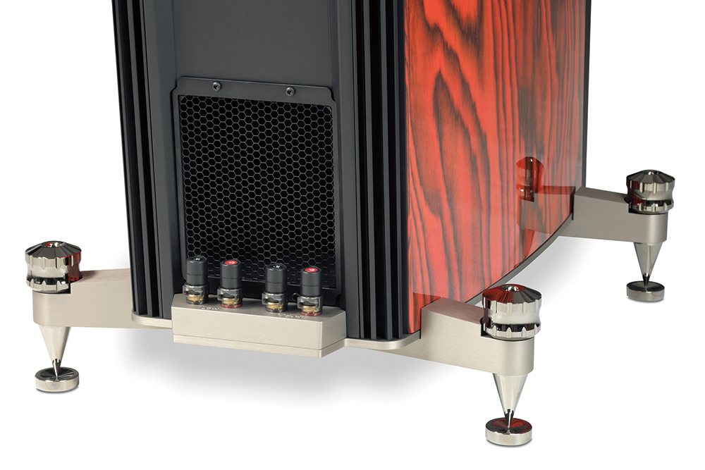 更に木製キャビネット内部を金属ケージで補強する事により、キャビネット剛性を最大限まで高め、120kgにもなる躯体全体で不要な振動の発生を徹底的に排除しています。