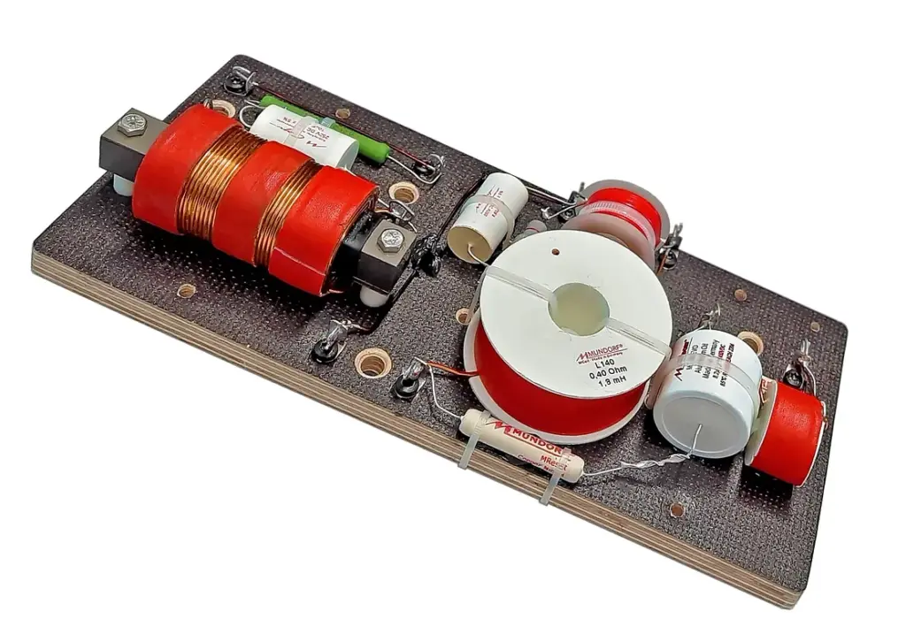クロスオーバーは”ポイント・ツーポイント”配線を行い、PCBを排除することにより音質変化を起こさない構造になっています。パーツはドイツMundorf社製の低抵抗OFCボイスコイル、オイルPPコンデンサ、シールドアンチインダクティブ抵抗を使用しています。