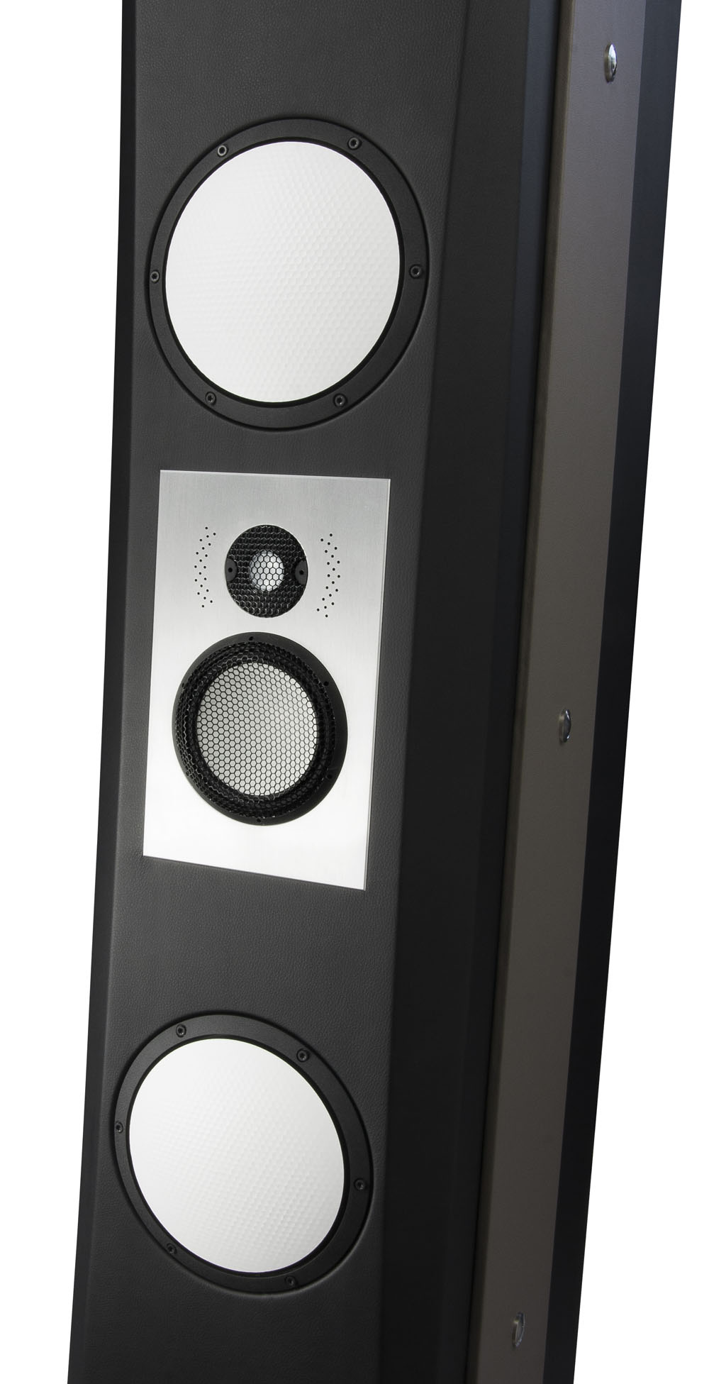 キャビネット左右には極厚の金属板を配置し、キャビネット内を貫通する長尺ボルトで強固に固定。”Ultra-Stiff Mechanical Coupling”と呼ばれるALBEDO社独自開発のこの技術はキャビネットを2枚の金属板にて挟み込む事により徹底的に共振を排除し、各ドライバーから放射されるエネルギーを全て正しい音響エネルギーとして空間を伝播させる事が可能となります。