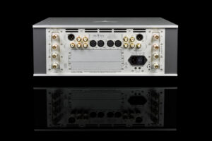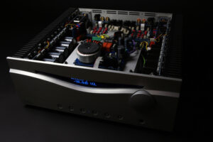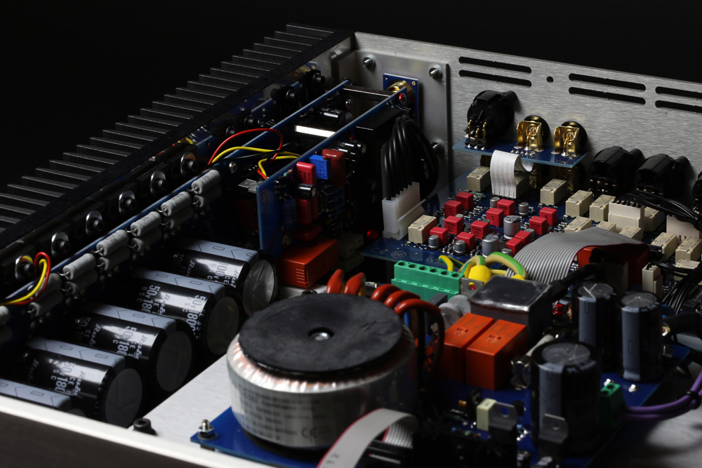 出力ステージにはAB級動作の独自回路を搭載。更に2000VAのトロイダルトランスが使用され、エポキシ樹脂が充填された二重の電磁シールドケースに収納。