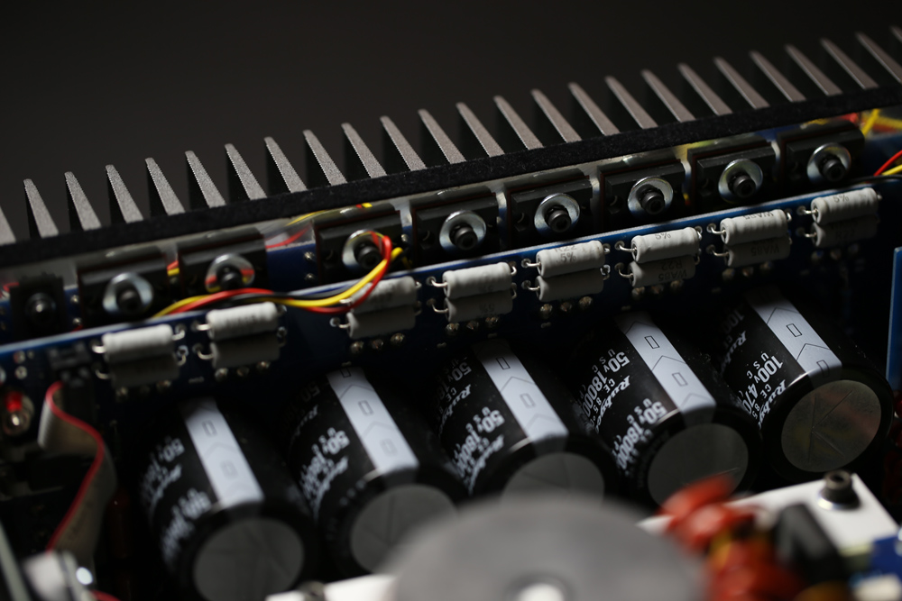● メイン供給電源は16個の18,000μF/50V超低インピーダンスコンデンサを使用。