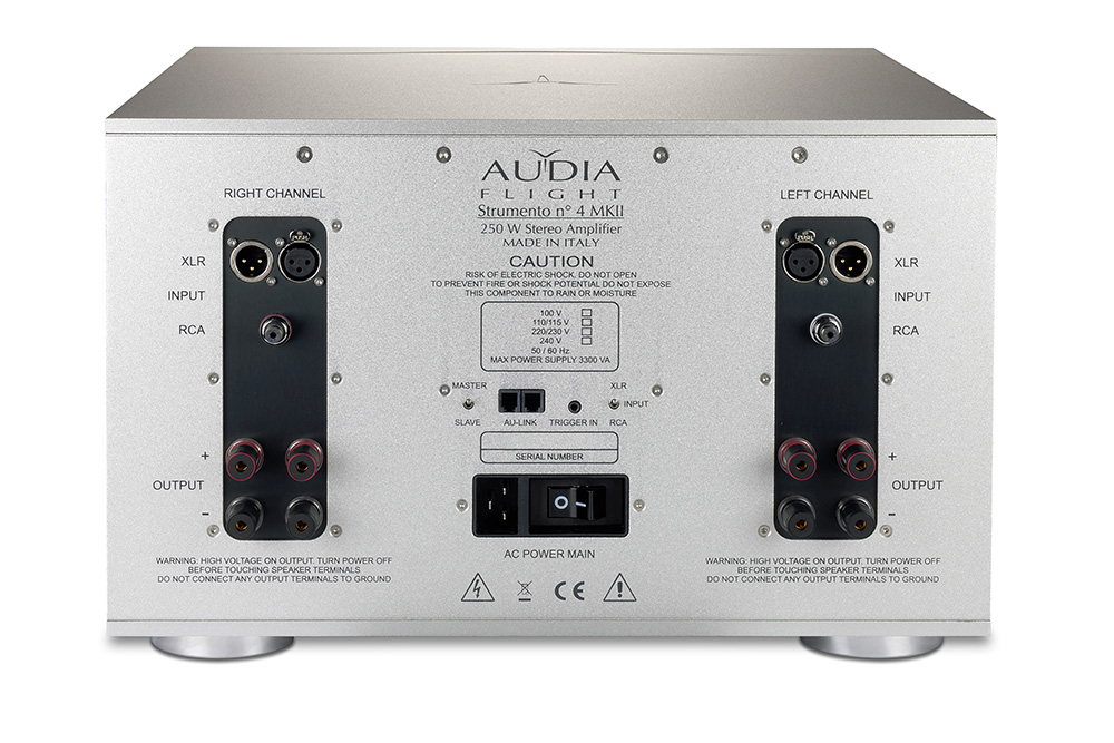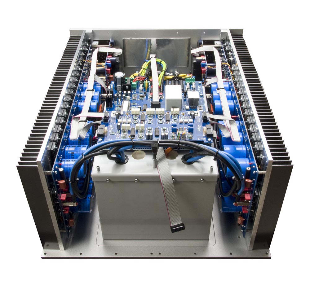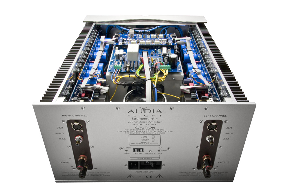 ● ゲインステージはL/Rチャネル完全ディスクリート構成で純A級バイアス動作のAUDIA独自の電流フィードバック回路により0.3Hz~1MHz、スルーレイト200/μs以上という驚異のスペックを実現。また、ゲインステージ基盤はアルミ製エンクロージャーに格納されており、動作時温度を一定に維持。また、内部はエポキシ樹脂が充填されており、エンクロージャ外部では大型アルミプレートを放熱目的で設置。