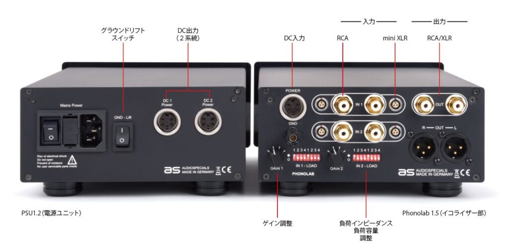 ●電源ユニットPSU1.2には2系統のDC出力標準装備。2台のPhonolab 1.5を同時に使用可能