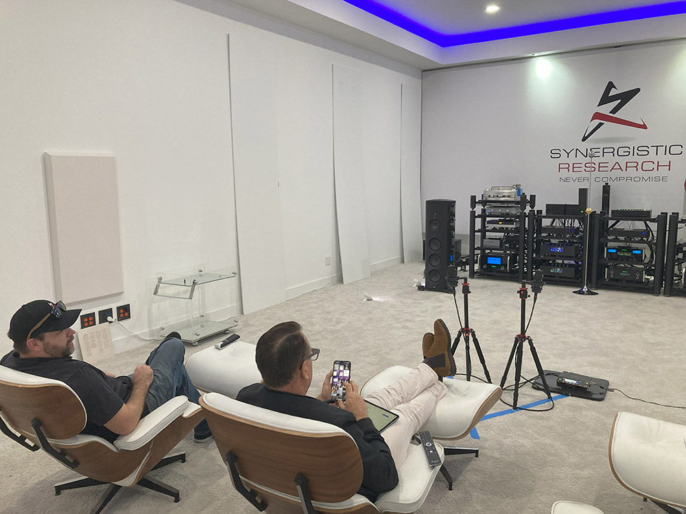 Synergistic Researchでは製品開発の際に徹底したブラインドテストを行い、先入観によって音の基軸がずれない様にしています。ブラインドテストは社長のTed氏と副社長のAndy氏2名で行われ、彼らも比較する製品/パーツのどれがどの様になっているのかを全く隠されたまま比較試聴を行います。先入観がない状態で純粋に音が良いと判断されたものだけが市場へ投入されます。