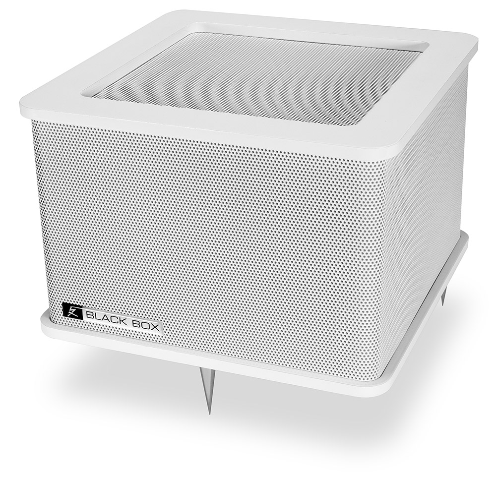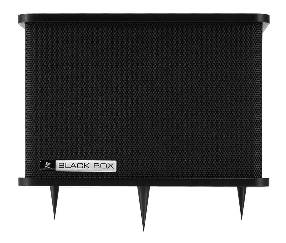 設置は非常に簡単でスピーカー間の後方壁近く、またはオーディオルーム4隅の低音が溜まる場所に置くだけです。Black Boxが溜まってモードが発生した低域を効果的に取り除き、ブーミー感を排除いたします。
