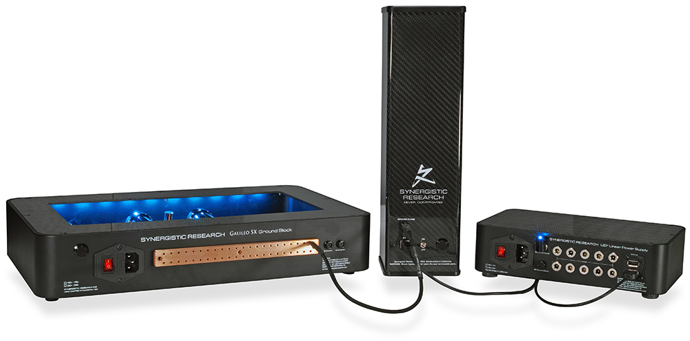 FEQ CarbonはSynergistic Research社のActive Ground Blockへ接続したり、電源をLinear Power Supplyへと接続する事も可能です。