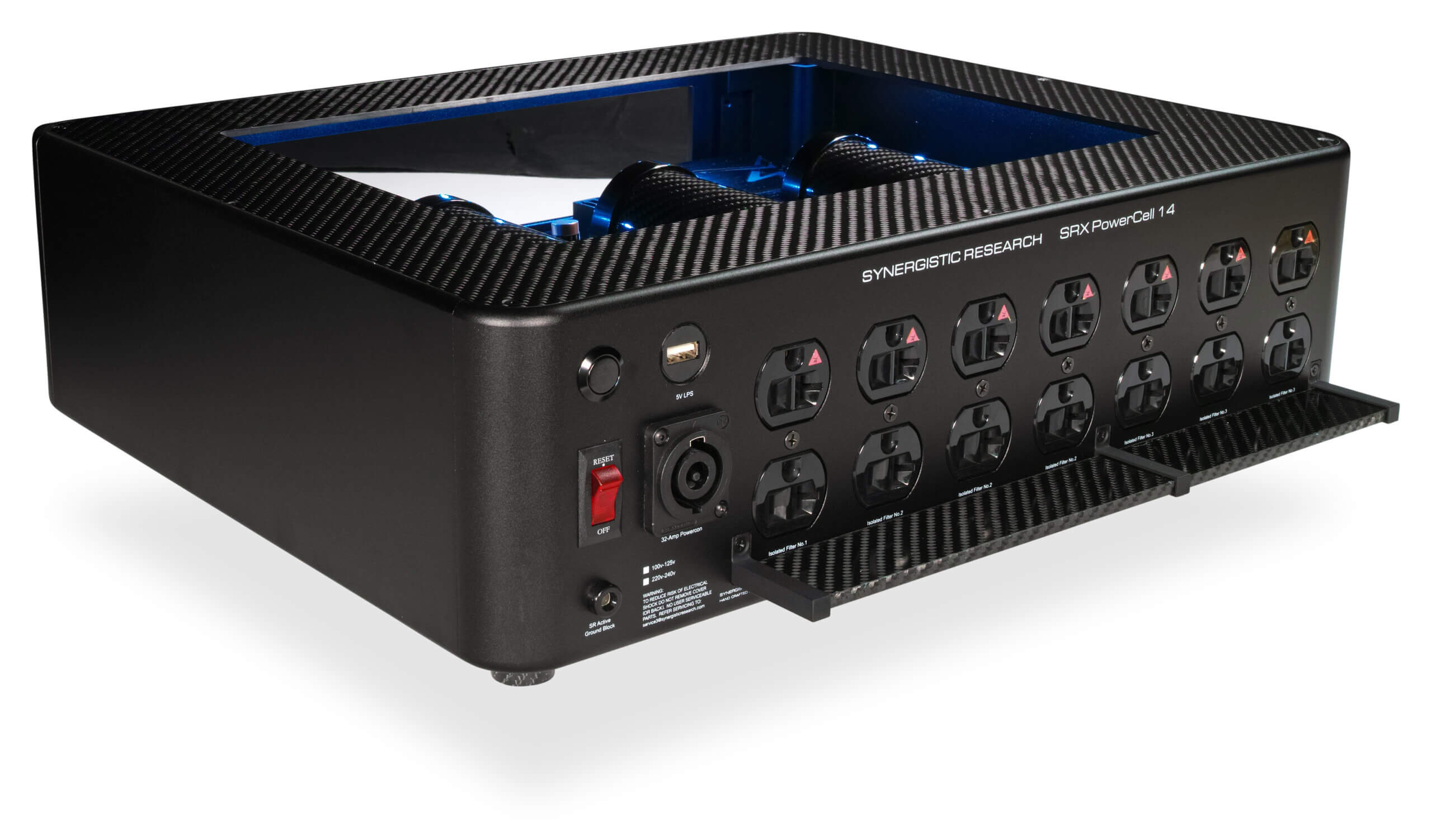 SRX PowerCell 14の中核には、7つのフルサイズのSRX電磁セルと、電磁セルが動作するフィールドを調整する専用のシートセル1つが搭載されています。各セルは手作業で組み立てられ、空気誘電体で構成され、カーボンファイバーで精密に覆われています。合計7,586cm²の電磁結合面積を持つこれらのセルは、下位クラスであるPowerCell 14の5倍の広さを誇り、SRX PowerCellと同一の形状、素材、UEFコンパウンドを採用することで、全周波数帯域にわたる比類のないダイナミクス、劇的に低いノイズフロア、そしてパワーコンディショニングの可能性を再定義するホログラフィックなリアリズムを実現します。