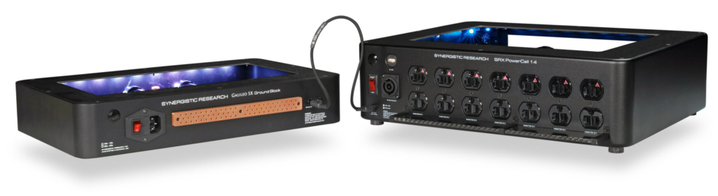 このパフォーマンスをさらに高めるには、SRX PowerCell 14をアクティブ・グラウンド・ブロックの1つに接地するオプションがあります。これによりノイズフロアをさらに低減し、低域の重みとアタックを改善できます。これにより、システム内のすべてのコンポーネントを電流損失なくフィルタリングするための14個のアウトレットをフルに活用できます。