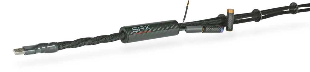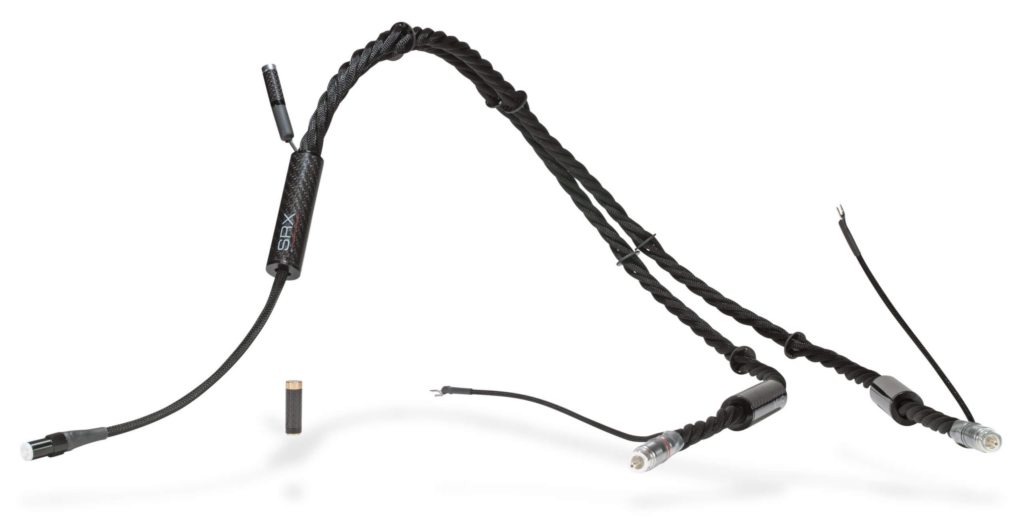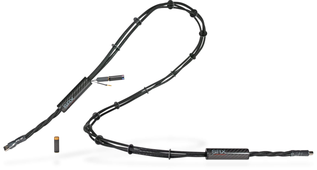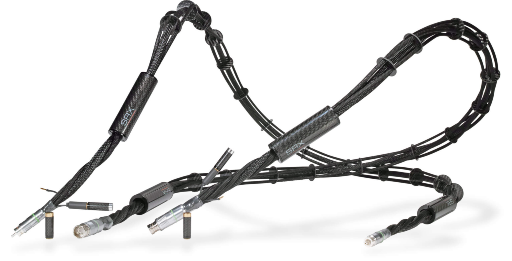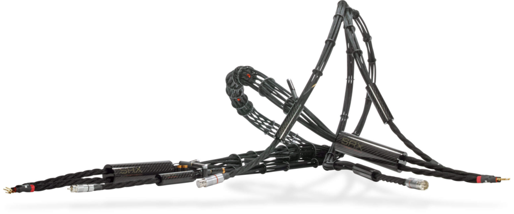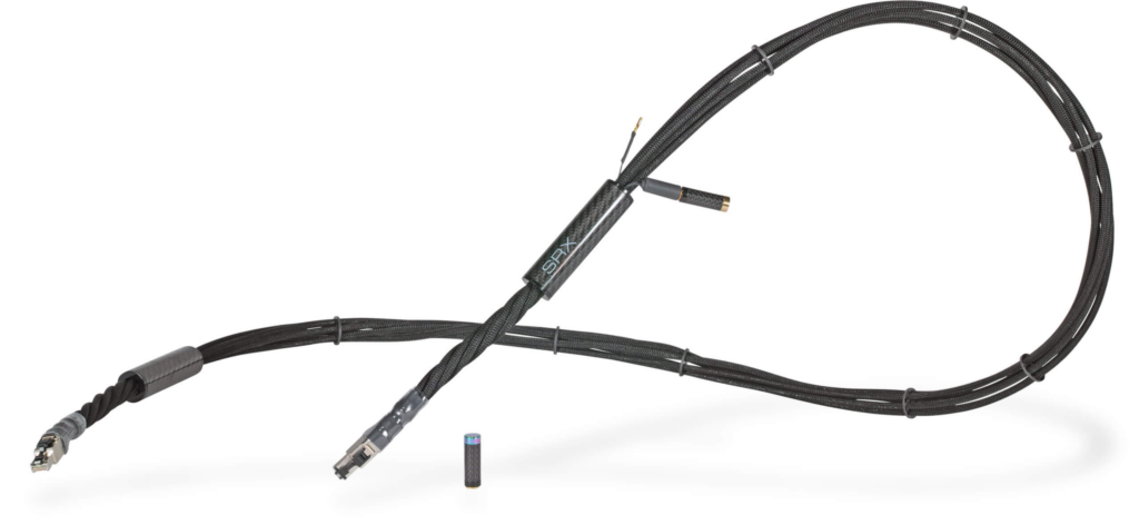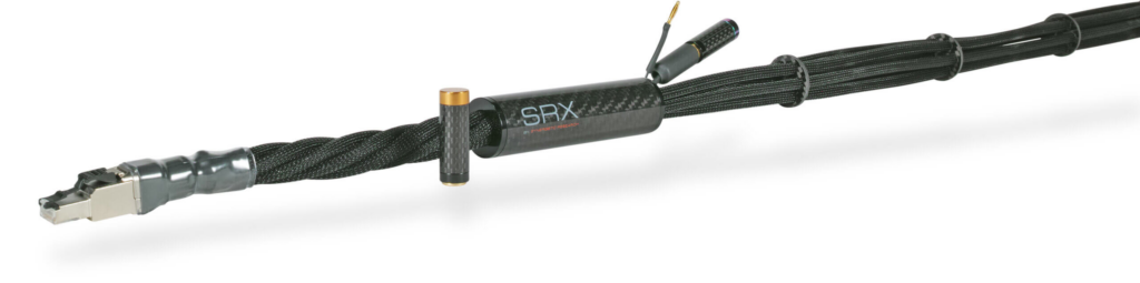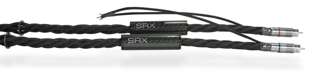 フォノケーブルはアナログを再生する上で最も重要な要素です。SRXフォノケーブルの形状は、フォノカートリッジの電気的特性とのマッチングを考え、導体間の設計されたEMカップリングと並行して走る独立した純銀製エアストリングを採用。次に、意図的ににEMカップリングを遮断するためにSRXカーボンファイバースペーサーを追加しました。